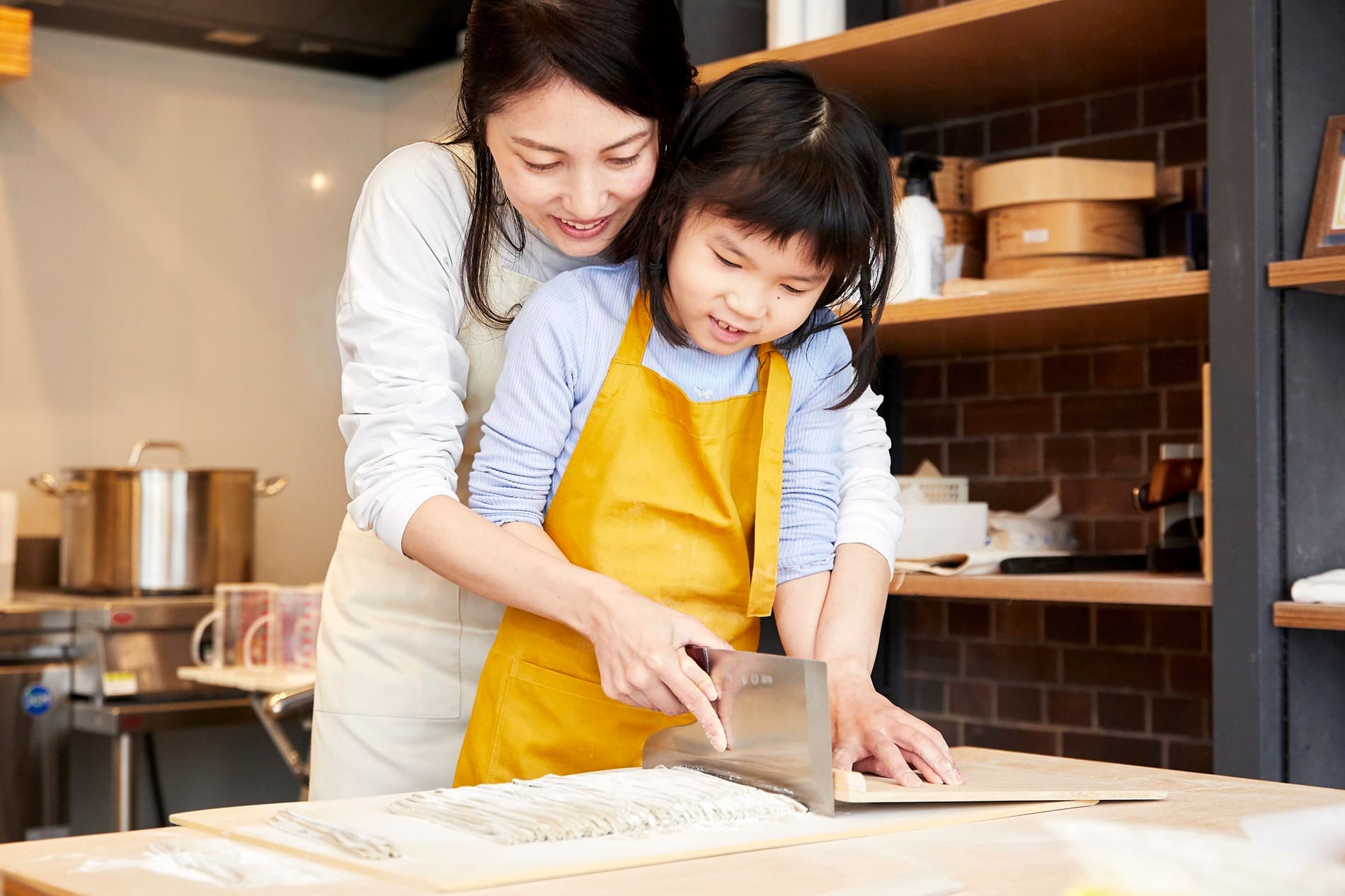 子どもと一緒にそばを打つ非日常体験は、新しいことに挑戦したくなる新年にぴったり。できたてのそばをすする贅沢なひとときを、この街で過ごしてみて。