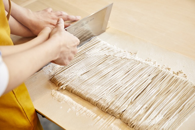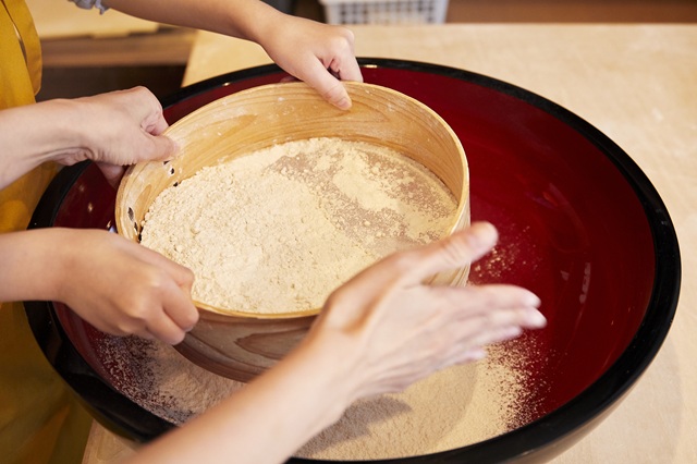 初めてでも楽しく挑戦できるそば打ち体験。親子で一緒に打ったできたてのそばをすする、ちょっぴり特別な新年を迎えてみては。