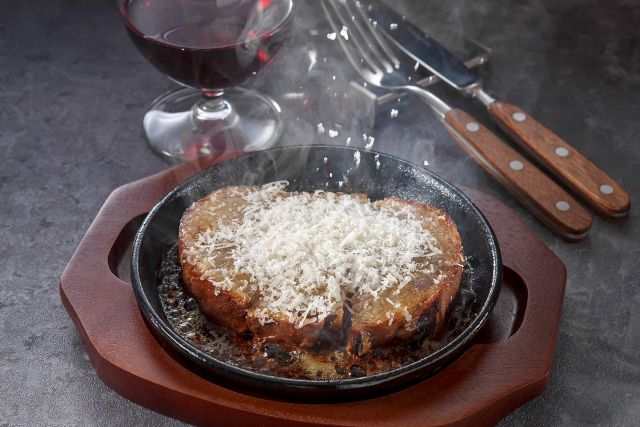 神戸屋で人気のトゥルニュ(いちじくとクルミのパン)に、アンチョビとバター、はちみつをかけて焼き上げ、仕上げにたっぷりのパルミジャーノチーズを振りかけたひと品です。甘じょっぱさがまさに“やみつき”の「いちじくとクルミのやみつきトースト」。
