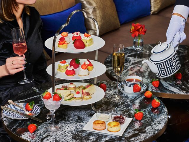 苺とチョコレートの贅沢なマリアージュを楽しむアフタヌーンティーを、最上階にあるラウンジで開催。