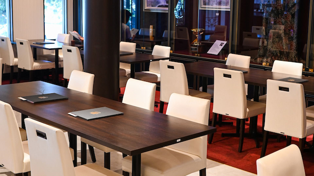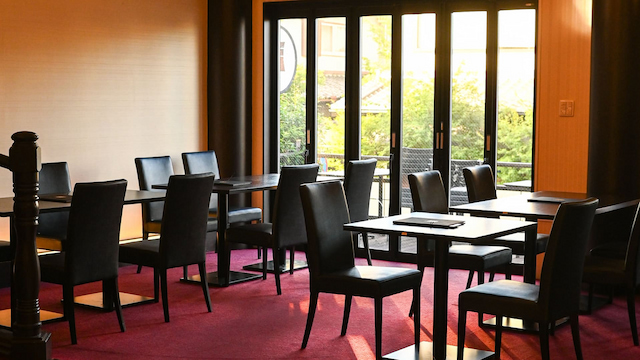 嵐山の緑を眺めながら食事が楽しめる空間に