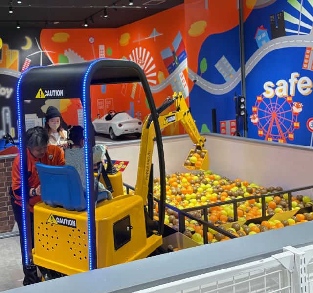「採掘現場調査員」としてショベルカ―に乗って操作したり、「メカニック」ではカッコいい車の運転体験もできます。