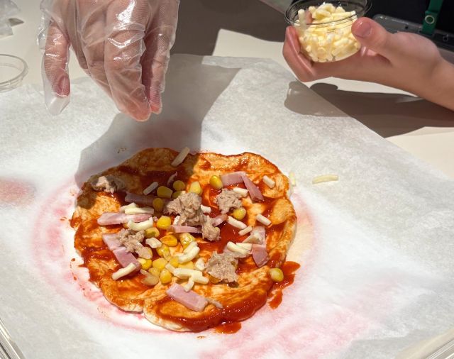 「ピザ作り体験」は、人気のアクティビティ。生地から作り、焼き上がったピザをその場で味わうお楽しみも。館内には軽食やドリンクの販売もあるので、おなかも満足できますよ。