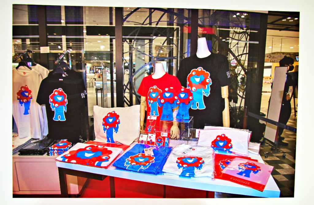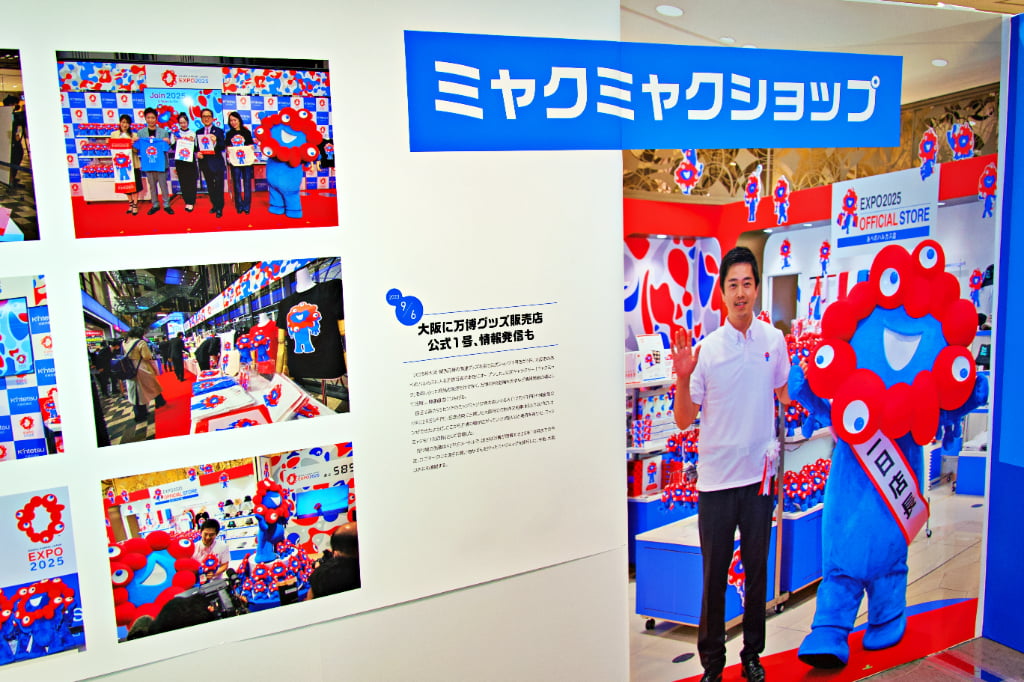 その次のエリアでは、期間中大人気だったミャクミャク公式ショップの様子が展示されています。あべのハルカス近鉄本店にオープンした第1号店を中心に、ショップ開設時の様子が紹介されています。