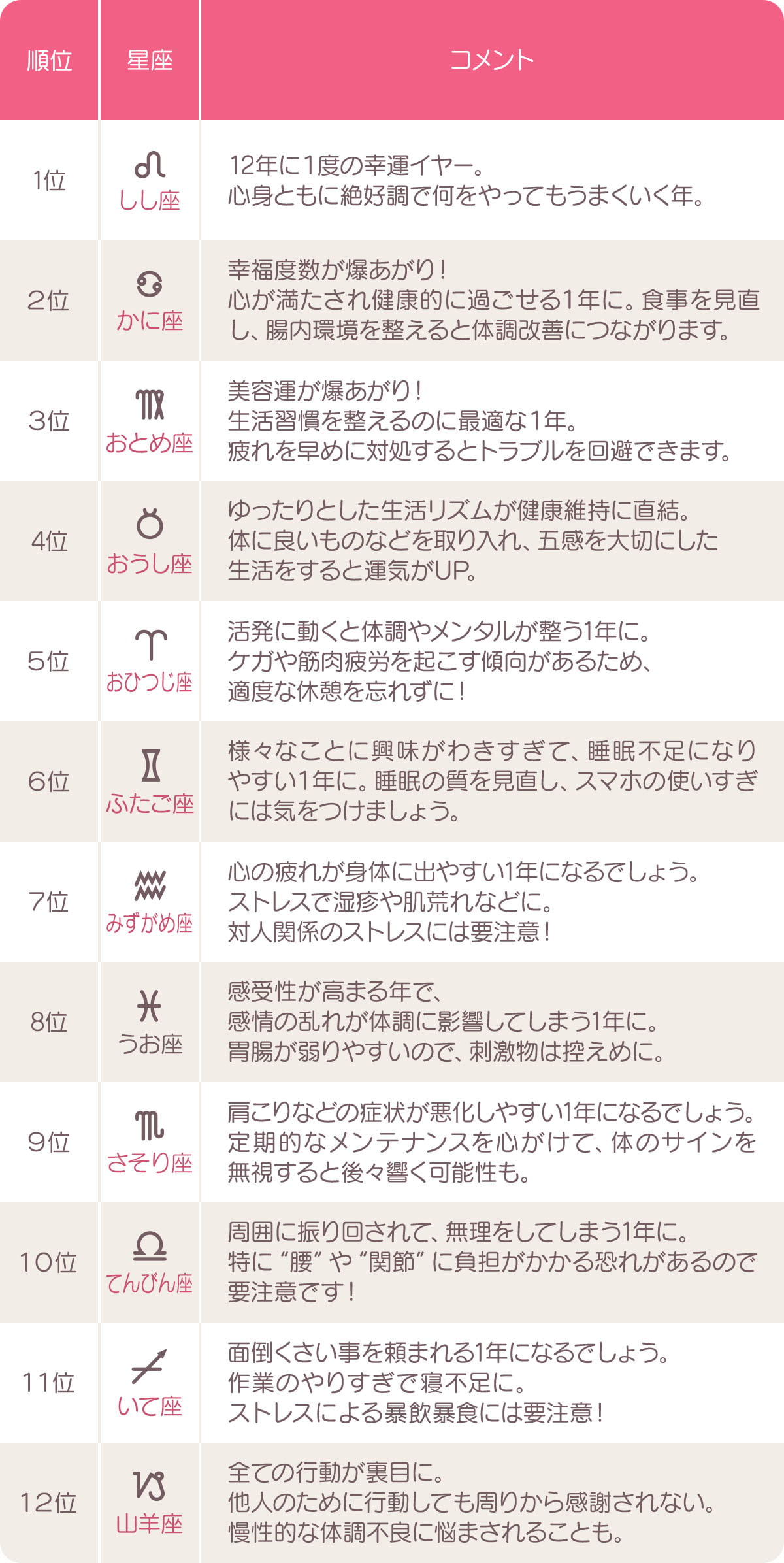 星座別に見る、健康運ランキングを発表!
