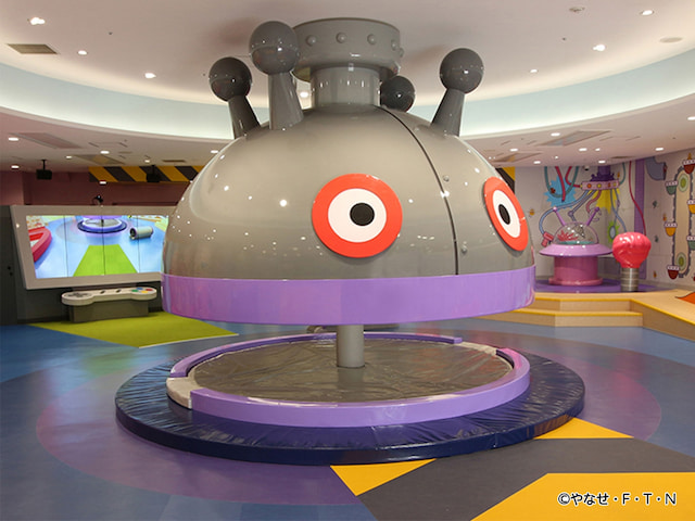 「バイキンひみつ基地」には、ばいきんまんが作った「バイキンメカ」がいっぱい! 登ったりジャンプしたりと、体を使って思いっきり遊べます。屋外では、実際に乗ることができる「レールトレインSLマン」(※)も運行中です。