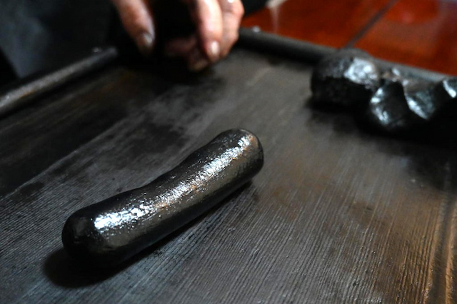 炊飯器で温めた生墨を取り出し、空気を抜く工程までは職人が担当。