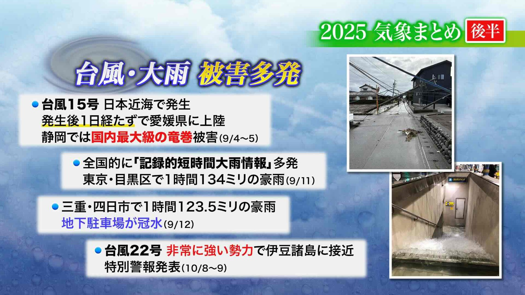 今年は「二季(にき)」という言葉が流行語大賞にノミネートされるなど、記録的な梅雨の短さ、猛暑、大雨、発生から上陸まで1日ほどで急発達した台風と、異常気象が相次いだ一年でした。