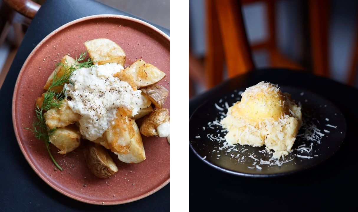 おすすめは5種のカレーを盛り合わせた「ミールスフルセット」。奈良県産米と古代米(黒米)を混ぜたライスの周りには、奈良県産オーガニック野菜を使ったカレーが3種と、お肉のカレーが2種類(鶏・豚)あいがけになっています。お肉のカレーには辛いスパイスを使っていますが、混ぜ合わせながら食べると程よい辛さでとてもおいしい! パパドを砕いて散らしてみたり、副菜と一緒に食べてみたり、お皿の中で自由に味変を楽しみましょう!