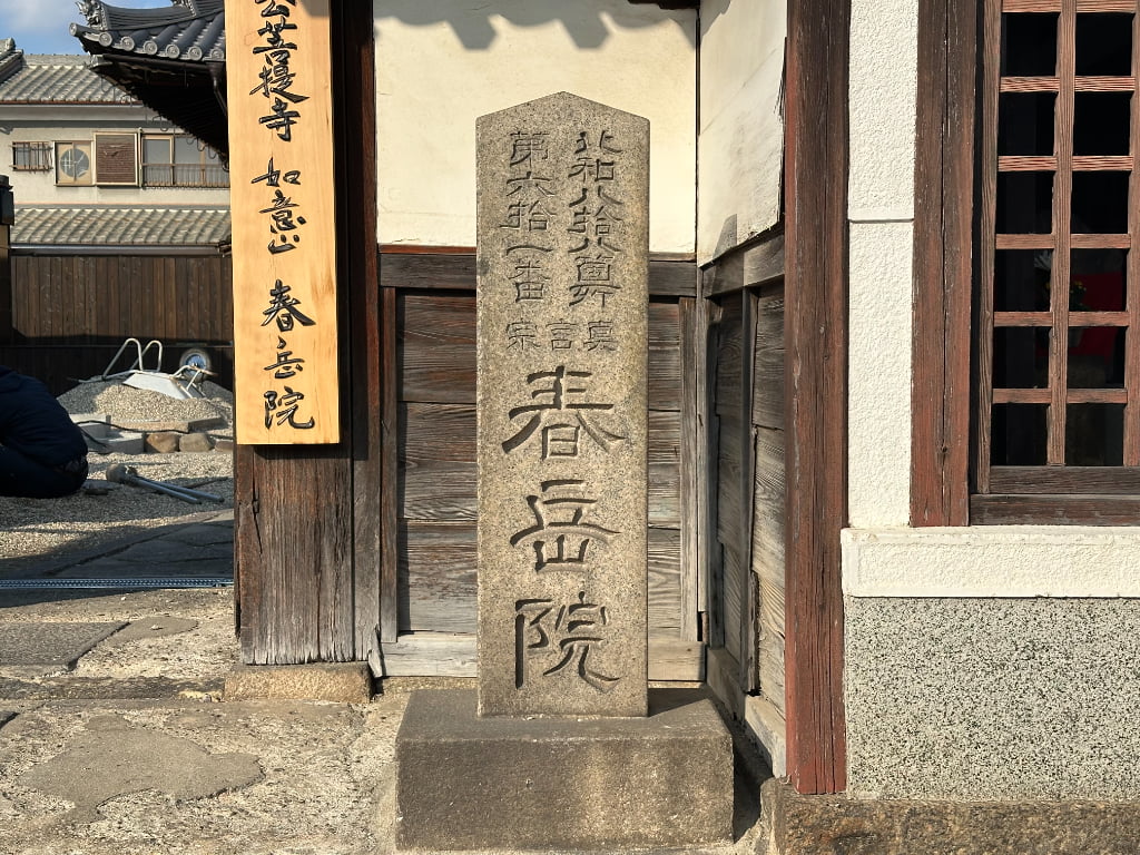 食後は、秀長の菩提寺「春岳院」へ。鎌倉中期に創建されたと伝わる高野山真言宗の寺院で、当初は東光寺と呼ばれていましたが、秀長の菩提寺となってからは戒名にちなみ「春岳院」と改まったそう。