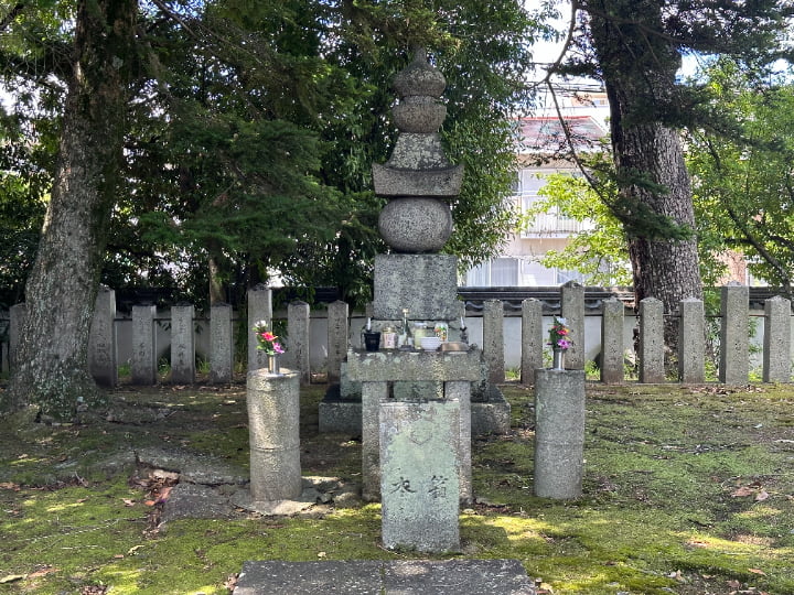もうひと寄り道するなら、秀長が眠る「大納言塚」へ。1591年、52歳でこの世を去った秀長の官職(大納言)にちなみ、「大納言塚」と呼ばれています。豊臣家の滅亡後に一時荒廃したものの、1777年に春岳院の僧が郡山町中の協力を得て五輪塔を建立し、土塀をめぐらせて現在の姿になりました。