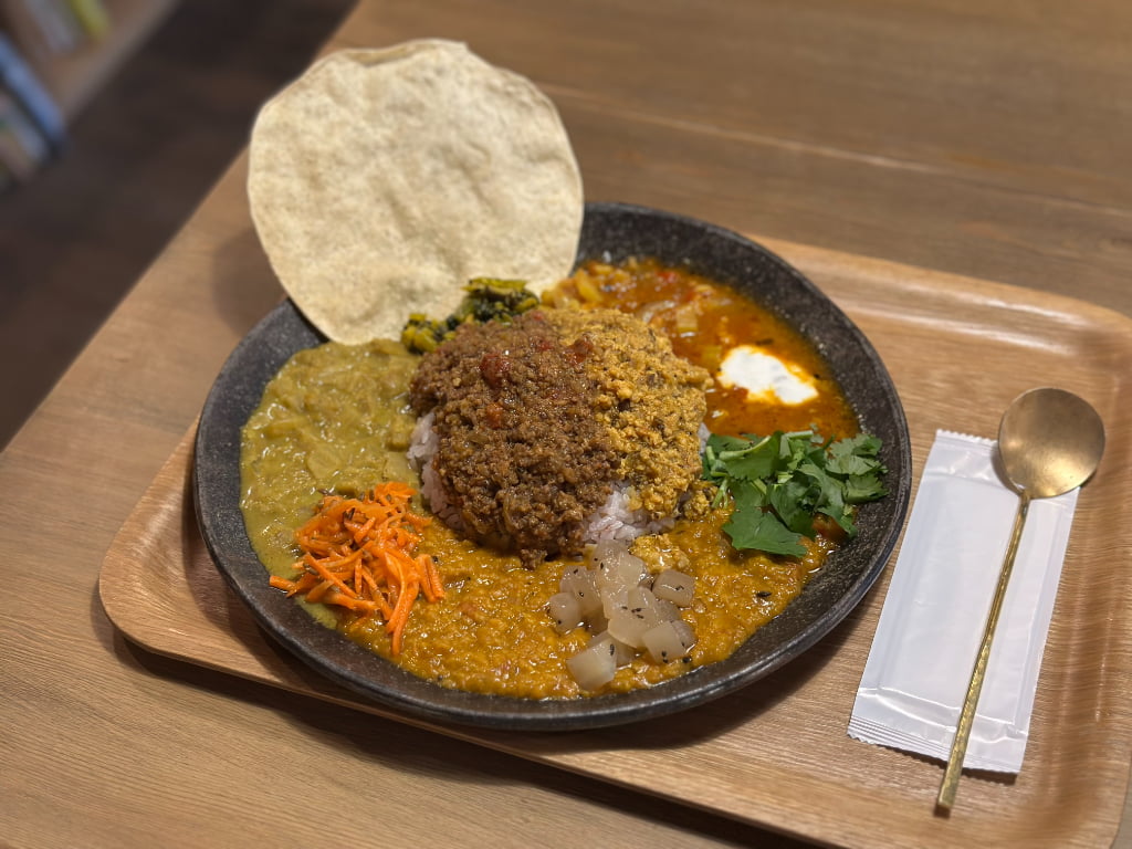 ランチは、辛いスパイスをあまり使わず、誰でも食べやすいやさしい味が特徴のカレー店「tabi tabi」へ。