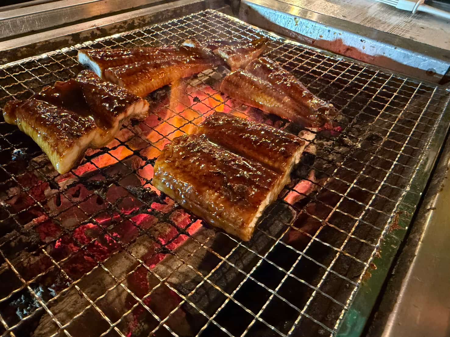 提供されるウナギは、炭火コンロ付きテーブルでセルフで仕上げるシステム。焼き方はスタッフが教えてくれるので初心者でも安心です。