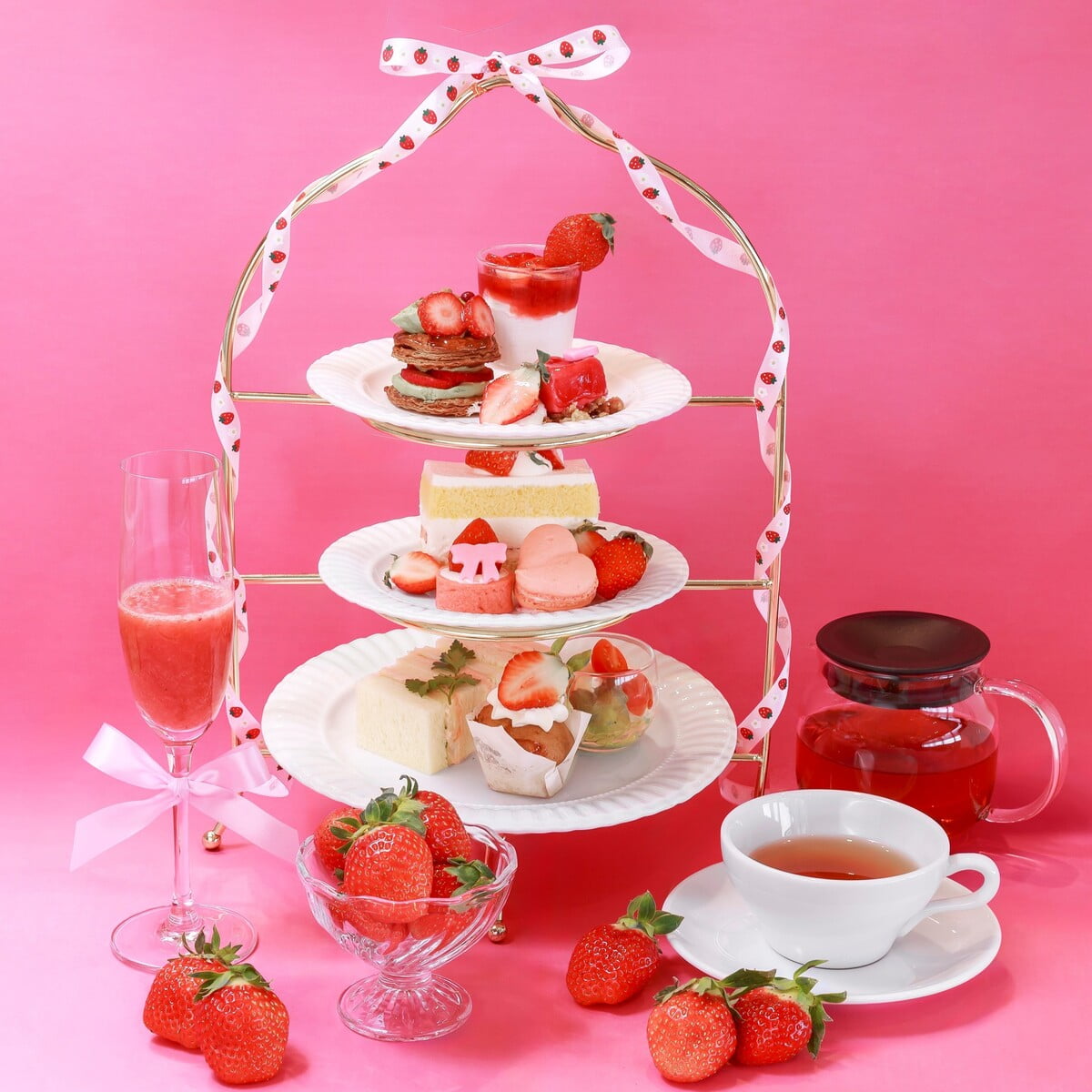 華やかな見た目と旬の素材を使った「いちごのアフタヌーンティーセット」