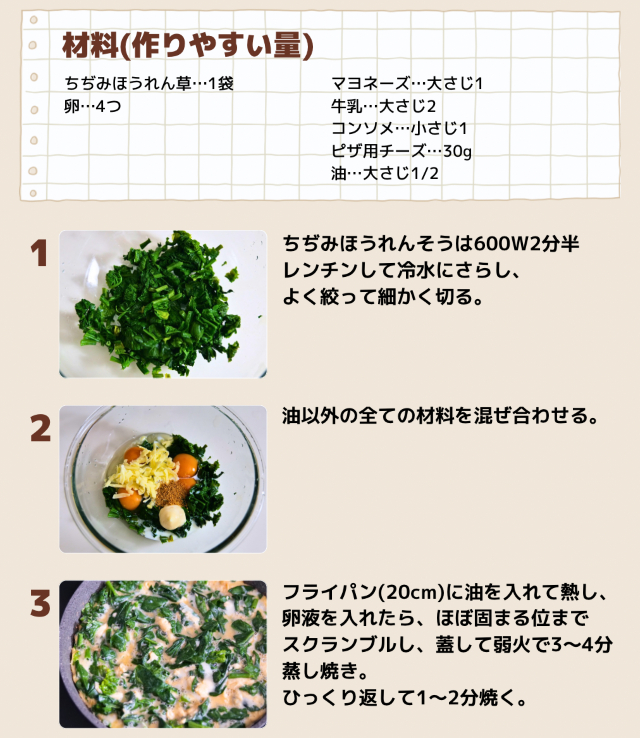 ちぢみほうれんそうのチーズオムレツ