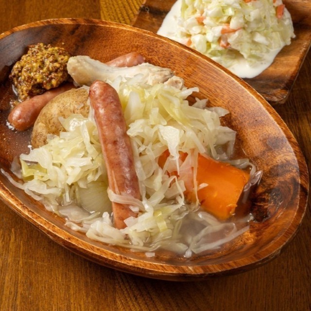 3.2に1のキャベツとソーセージを入れて少し煮て、お好みで粒マスタードを添えて完成!