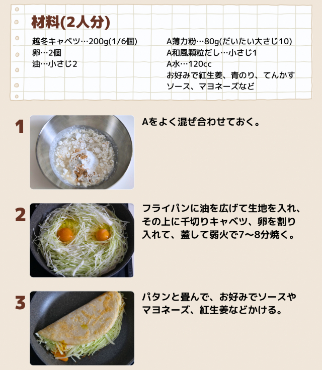 大阪名物「キャベツ焼き」で、「越冬キャベツ」のおいしさを全面的に堪能できます♪