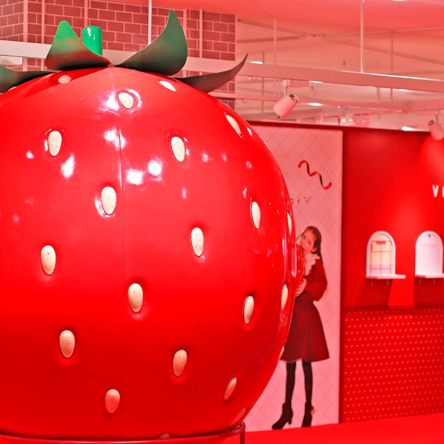 8階には直径2m以上の巨大いちごのフォトスポットが、1月14日(水)から登場。会場内にはほかにも、カラフルなフォトスポットが用意されています。
