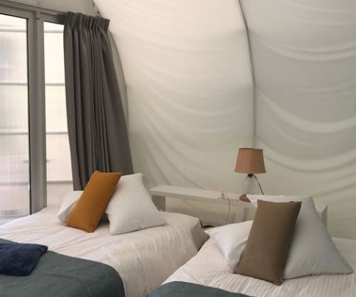 客室は“繭”をイメージして作られており、高さ5m以上の天窓から朝日を浴びるなど、日常では味わえない自然のパワーを感じることができます。