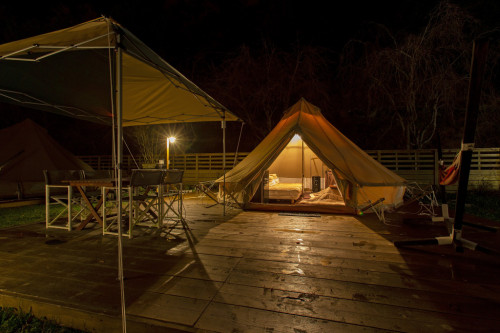 グランピングというと、なんとなく暖かい季節を想像しますよね。しかしこちらでは、テントの中にこたつが装備されていたり、エアコンや防寒具が用意されていたりと、寒さ対策が抜群。寒い日でも快適に過ごすことができるんです。