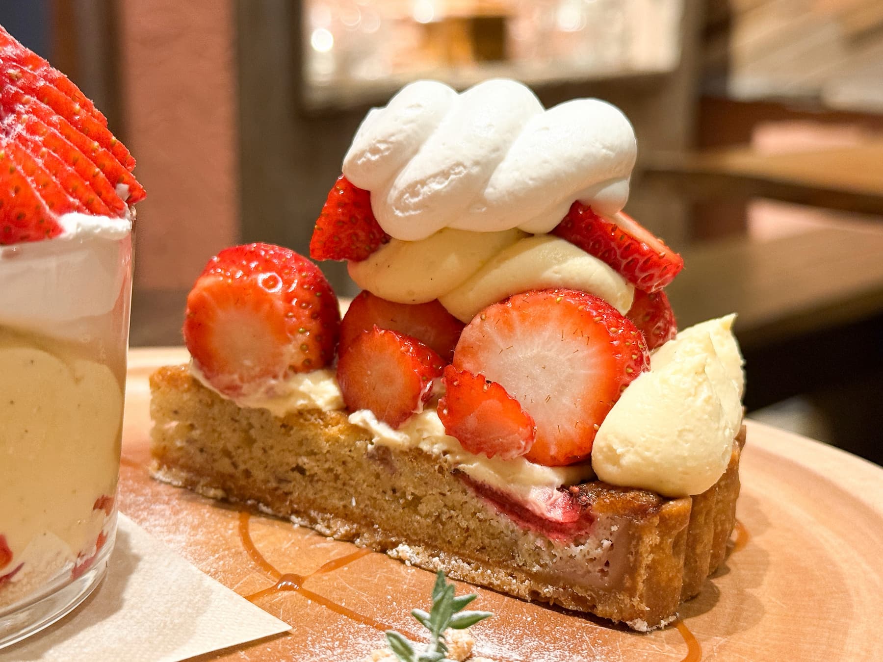 食べてみて驚いたのは、タルト生地の中にもいちごが焼き込まれていること。「cafe sugar ebie」のタルトには、必ず上にのったフルーツと同じ種類のフルーツを生地に焼き込んでいるそうで、最後のひと口までしっかりと“いちご感”を楽しめます。
