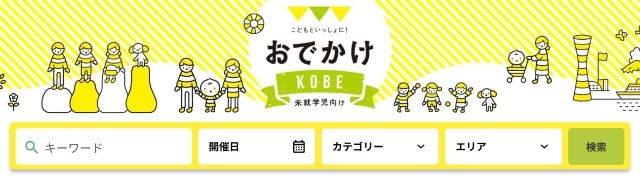 WEBサイト「おでかけKOBE」は、神戸市で開催予定の最新情報がまとめてチェックできるイベント情報サイト。キーワードや開催期間、エリアといったカテゴリで検索できるだけでなく、「未就学児向け」「小中学生向け」「全年齢向け」などお子さんに合わせたカテゴライズも可能です。