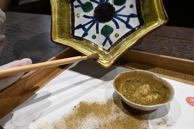 金継ぎの工程は大きく分けて、埋め、研ぎ、塗り、そして仕上げに金や銀などの粉を蒔く4つの工程に分類されます。それぞれの工程ごとに乾燥させる時間が必要なので、完成までにおよそ1カ月はかかるのだとか。
