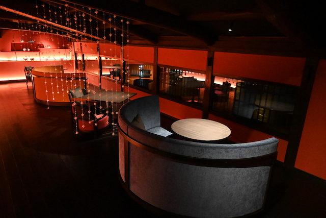 2024年3月、国の有形文化財に登録されている「界 加賀」の「伝統建築棟」にべんがらラウンジがオープンしました。山代温泉の街並みを一望できる特等席で、地酒片手に夕食後の静かなひとときを一晩4組限定(1人3,500円)で過ごせます。