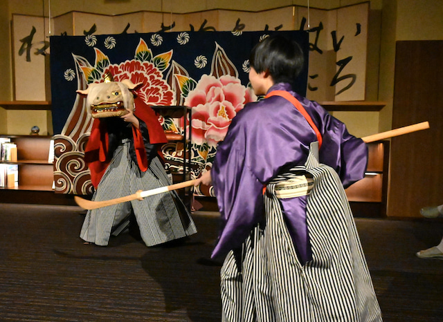 伝統工芸や芸能などを楽しめる「界」名物の「ご当地楽」。「界 加賀」では、金沢市の無形民俗文化財にも指定されている伝統の加賀獅子舞を、地元の工芸作家や民俗芸能チームの協力を得て独自にアレンジして毎晩上演しています。