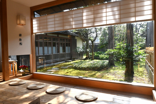 魯山人も眺めていたであろう庭園を見ながら、お茶もいただけます。