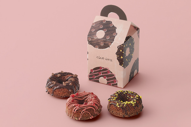 新作「チョコ部開発商品 クラブハリエのWA」は、インスタライブ「チョコ部」にて、ショコラティエとお客様が共同で開発した商品♡ チョコ感たっぷり、POPにデコレーションした3種の味わいの焼きドーナツで、ショコラティエが生地の食感やチョコレートにこだわっています。