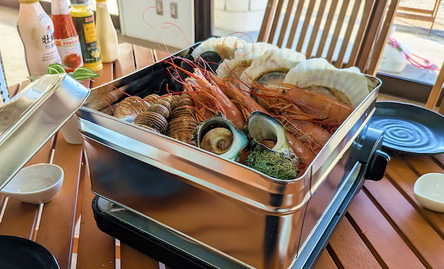 また今年は、新メニューとして「海鮮ガンガン焼き」も登場! 牡蠣に加えて、エビやホタテなどの海鮮を豪快に蒸し上げた一品で、満足度の高い食体験が楽しめます。牡蠣も海鮮もどちらも食べたい…という欲張りな気分の日にもぴったりです。