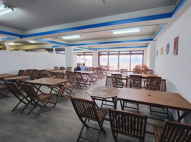 二色の浜公園の「牡蠣小屋ブルーテラス」は、2026年も土・日・祝の期間限定でオープン。目の前に海が広がるロケーションでありながら、店舗は完全屋内型のため、寒さや天候に左右されずに牡蠣料理を楽しめるのが大きな魅力。冬の海を眺めながら、ゆったり食事を楽しみたい方にぴったりです。