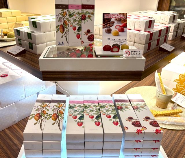 ほかにも、赤福の伝統技を生かして仕立てた餅菓子の「燦」シリーズとして、いちご・チョコ・マロンの3種類がスタンバイ。
