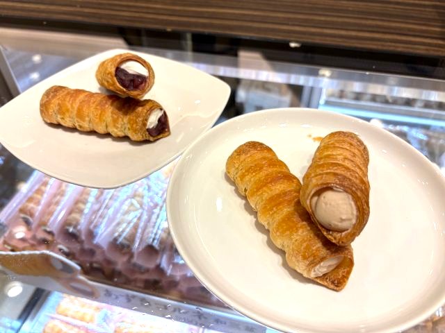 サクサクの生地に、クリームがたっぷり詰まった2種類のコルネの販売も。