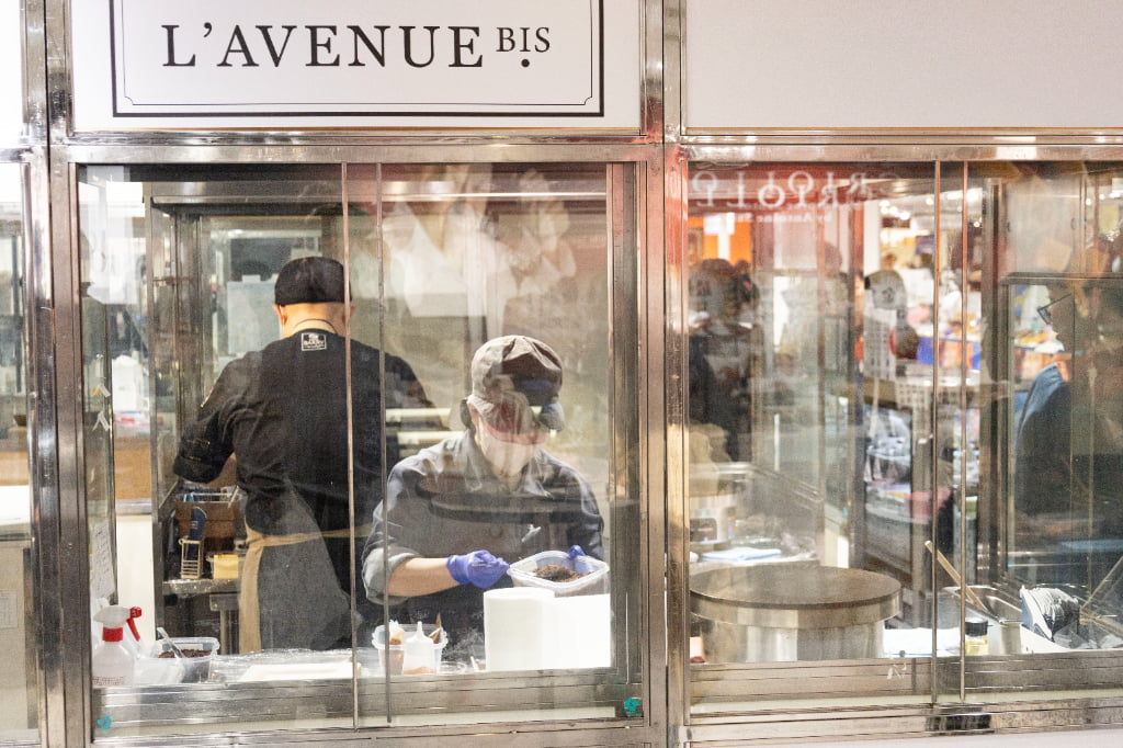 ジェイアール京都伊勢丹の注目ポイントのひとつが、神戸の人気店「ラヴニュー ビス」をはじめとするイートインコーナー。ここでしか出合えない限定のショコラスイーツを、その場で堪能できます。