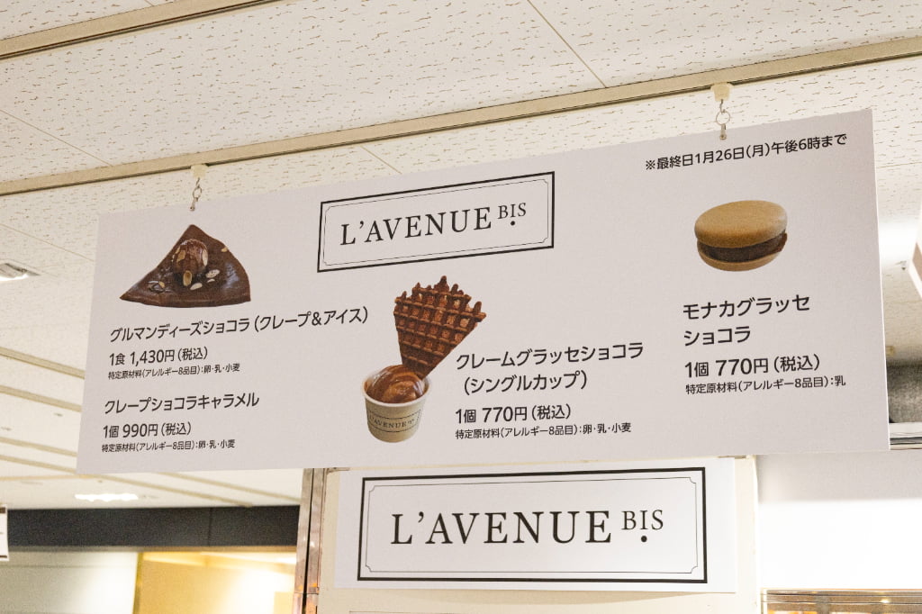「ラヴニュー ビス」からは「グルマンディーズショコラ(クレープ&アイス)」のほか、限定メニュー3種がラインナップ(いずれも2026年1月26日(月)18:00までの販売)。できたてのおいしさを味わえるのは、うれしいですよね……!