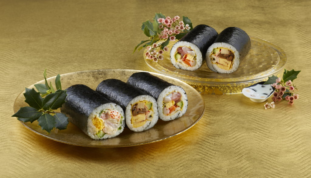 トムヤムシュリンプと青米を青鬼と赤鬼に見立てた「チェディルアン」の「トムヤムシュリンプの恵方巻」や、食パンで具材を包み海苔をくるりと巻いた「ダイヤ製パン」の「カツとローストビーフの恵方巻サンド」、10,000円超えの恵方巻を販売する「魚くみ」による「大トロたっぷり海鮮豪華巻」などがラインナップします。