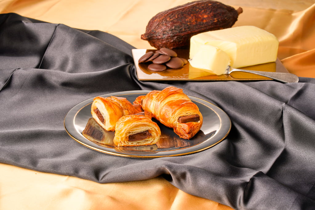「至高のチョコクロ」は、「サンマルクカフェ」の「VS 王道のチョコクロ」企画第⼆弾として登場。今回は “上質” がテーマで、クロワッサン⽣地には本企画のために新たに開発した、フランス産発酵バターが芳醇に⾹る特別な⽣地を使⽤しているそうです。