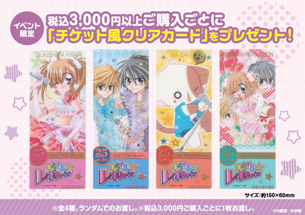 そして、期間中にポップアップショップでグッズを3,000円以上(サイン本は対象外)購入した人に、ノベルティとして「クリアカード」を1枚プレゼント。全4種類からランダムでもらえます。ノベルティは非売品でなくなり次第終了なので、気になる人はお早めに♡