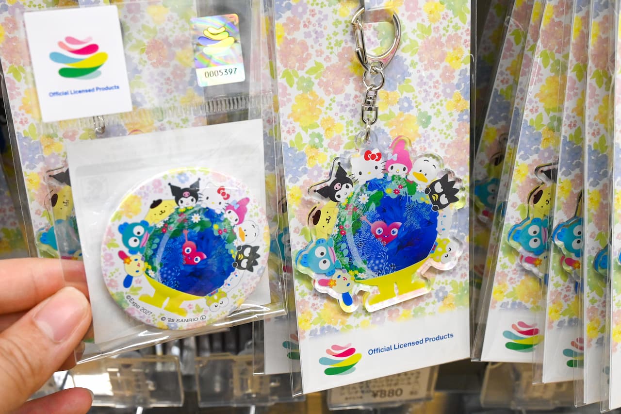 「すぐに売り切れてしまうんです」と担当者が話すのが、サンリオキャラクターズとのコラボアイテム。キーホルダーや缶バッジ、ボールペンなど、日常使いしやすいラインアップで、思わず手に取りたくなるかわいさです。