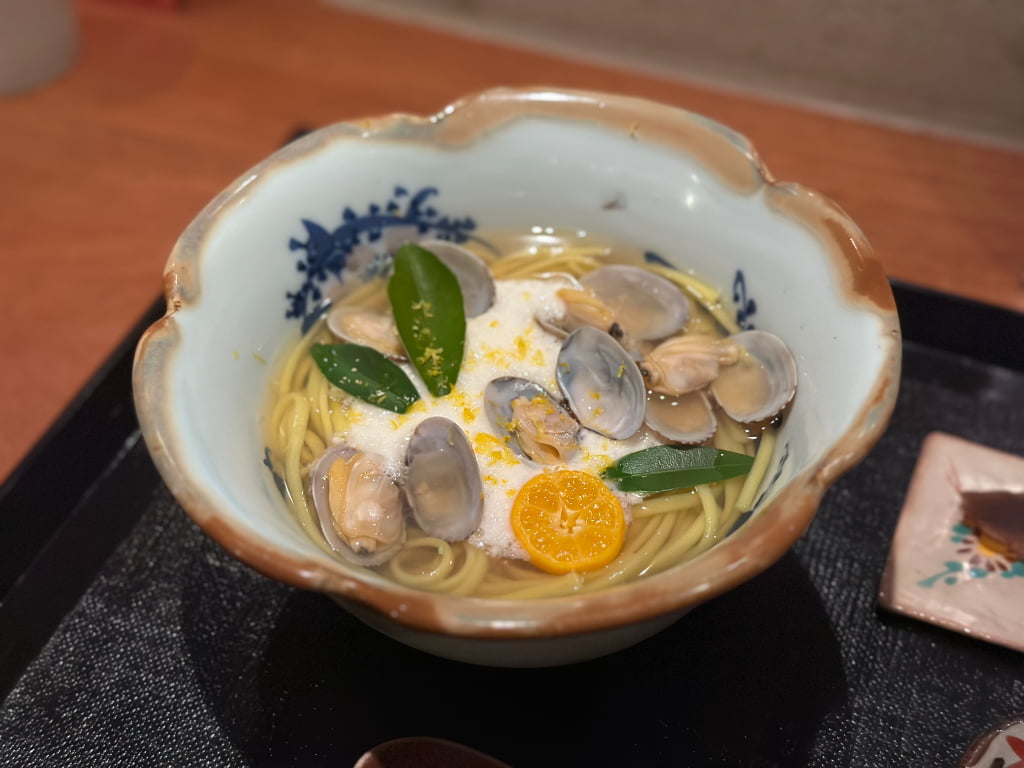 大和橘を練り込んだ香り高いそうめんが楽しめる昼の部もおすすめです。