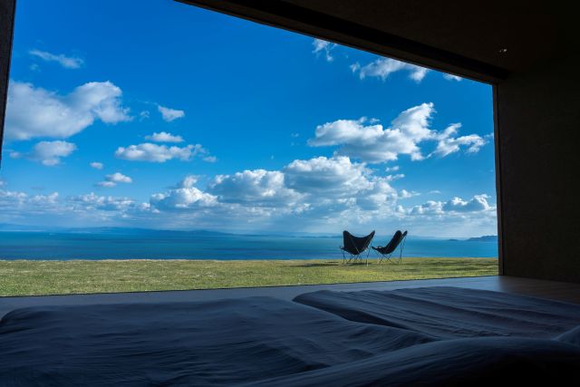 島から見える揺れる波の動き、風が通る木々の音、鳥のさえずり、流れる雲、広い空。そして遮るもののない眺望。そんな非日常を味わえるのが、一棟貸し宿で過ごせるスモールホテル「Nook」です。