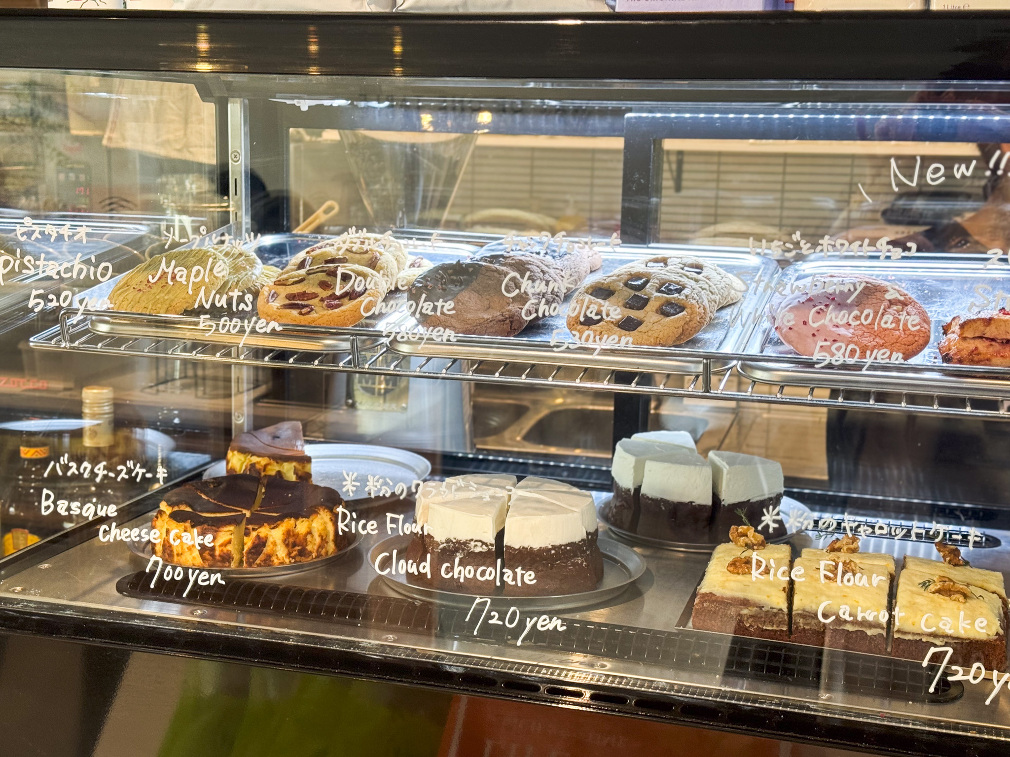 店内のウインドーには、「WOOT」一番人気の大きな「チャンクチョコレートクッキー」をはじめ、「バスクチーズケーキ」、「米粉のクラウドショコラ」「米粉のキャロットケーキ」など、“ちょっと甘いもの”が欲しいときにぴったりなスイーツがずらり。