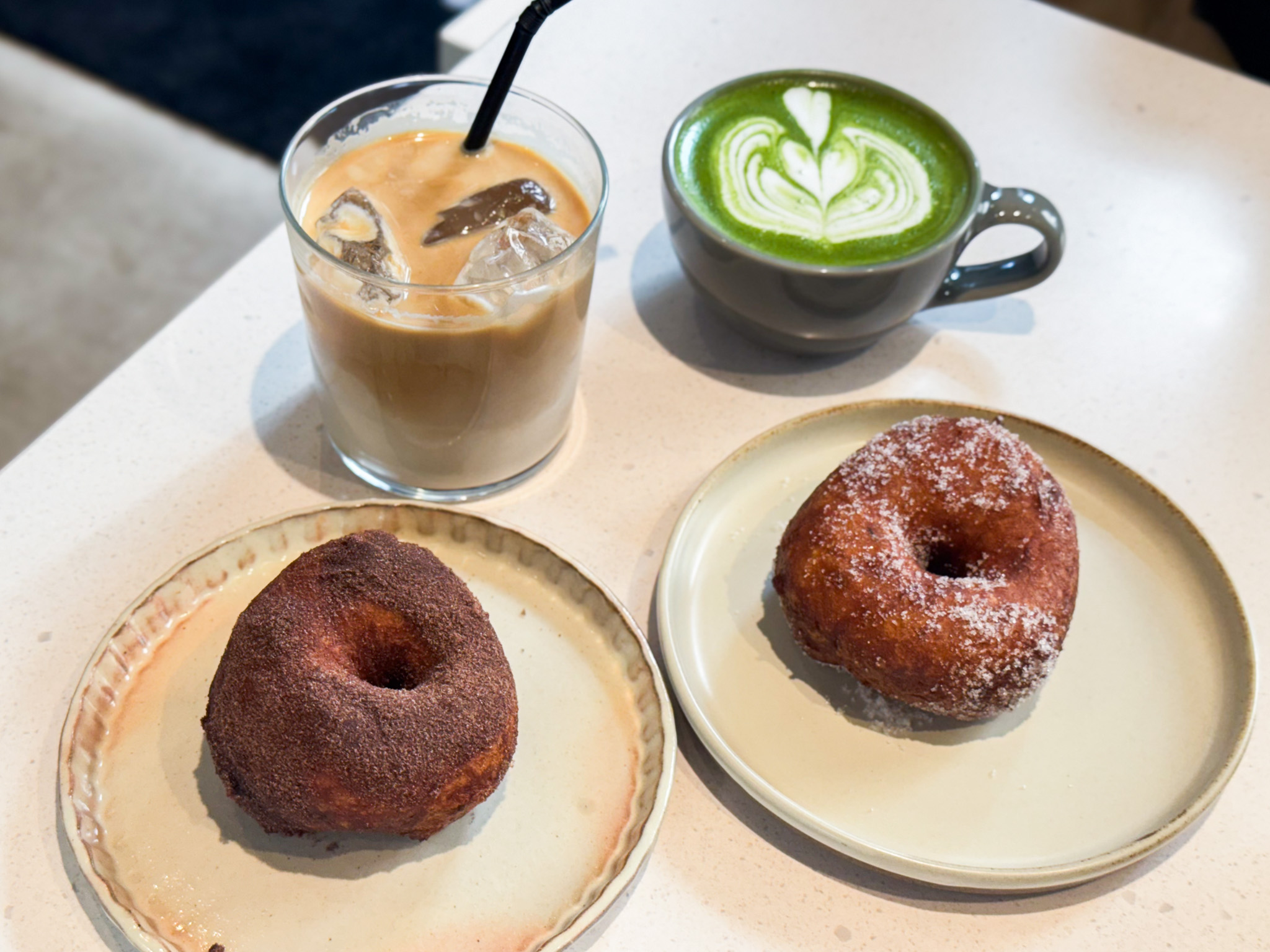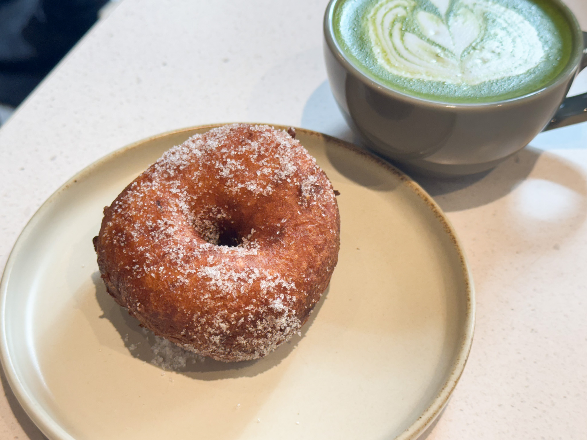 以前から気になっていたものの、なかなか食べる機会がなく、実はこの日が人生初マラサダ。ドーナツのようなふんわりした食感を思い描いていましたが、ひと口食べると、外はサクッと、中はふんわりもちもちの揚げパンのような食感で、気づけばあっという間に完食。ラテとの相性も抜群です。