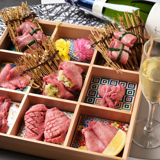 全80種以上のメニューがそろう「プレミアム食べ放題コース」では、塩タンやカルビといった定番焼肉だけでなく、人気の「壺漬けドラゴンハラミ」や「サムギョプサルセット」もすべて食べ放題に! 追加料金で飲み放題も選べるので、飲み会にもぴったりです。