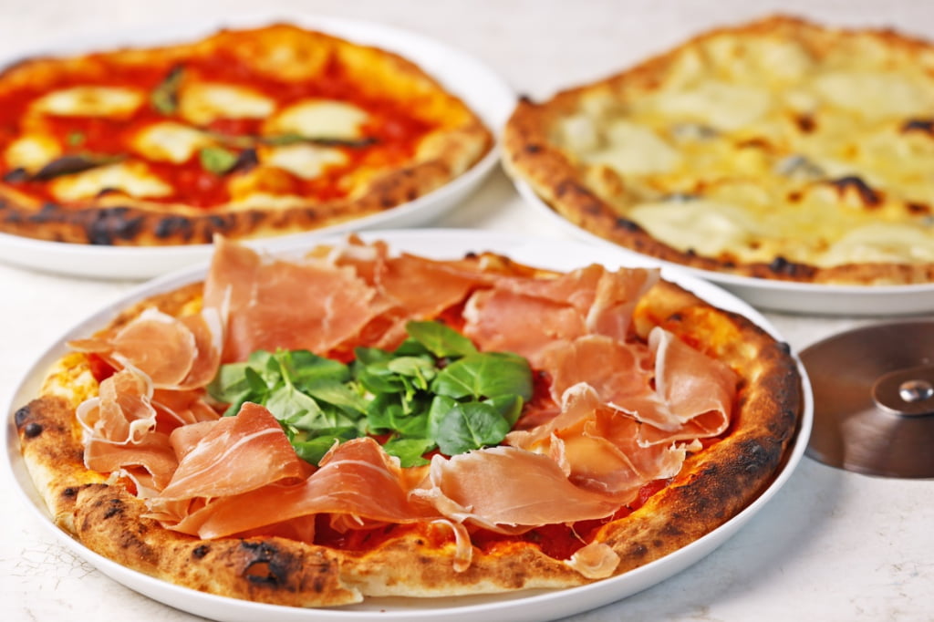 看板商品のナポリピッツァは、お店の窯で焼き上げる本格派。「マルゲリータ」「マリナーラ」「クワトロフォルマッジ」といったメニューが思う存分味わえます。