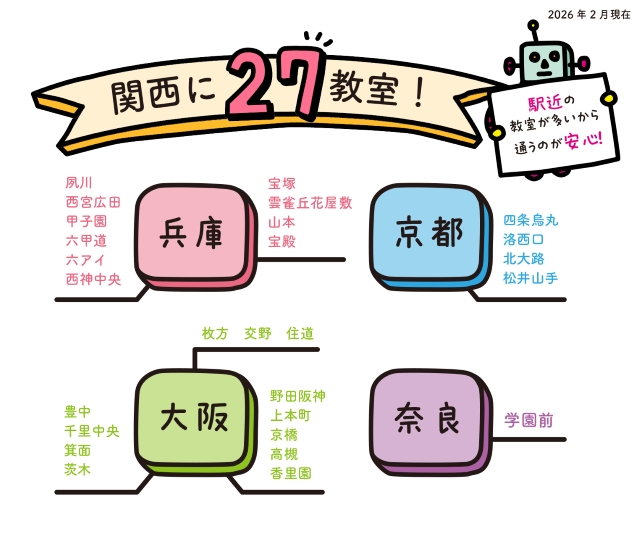 関西だけでなんと27教室! 駅近の教室が多くてうれしい!