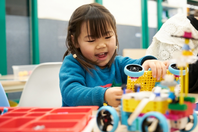 PCやタブレットだけを使う教室や、オンライン完結型のプログラミング教室が多い中、「プログラボ」はレゴ®ブロックでロボットをつくり、動かしながら、その過程で生まれる「なぜ?」を自然と積極的に考えるようになっていきます。この試行錯誤の積み重ねが論理的に考える力や問題解決力にもつながっていくんです。
