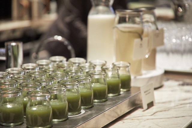 「本日のスムージー」は、グリーンスムージー。朝の一杯でしっかり体を目覚めさせてくれます。 -